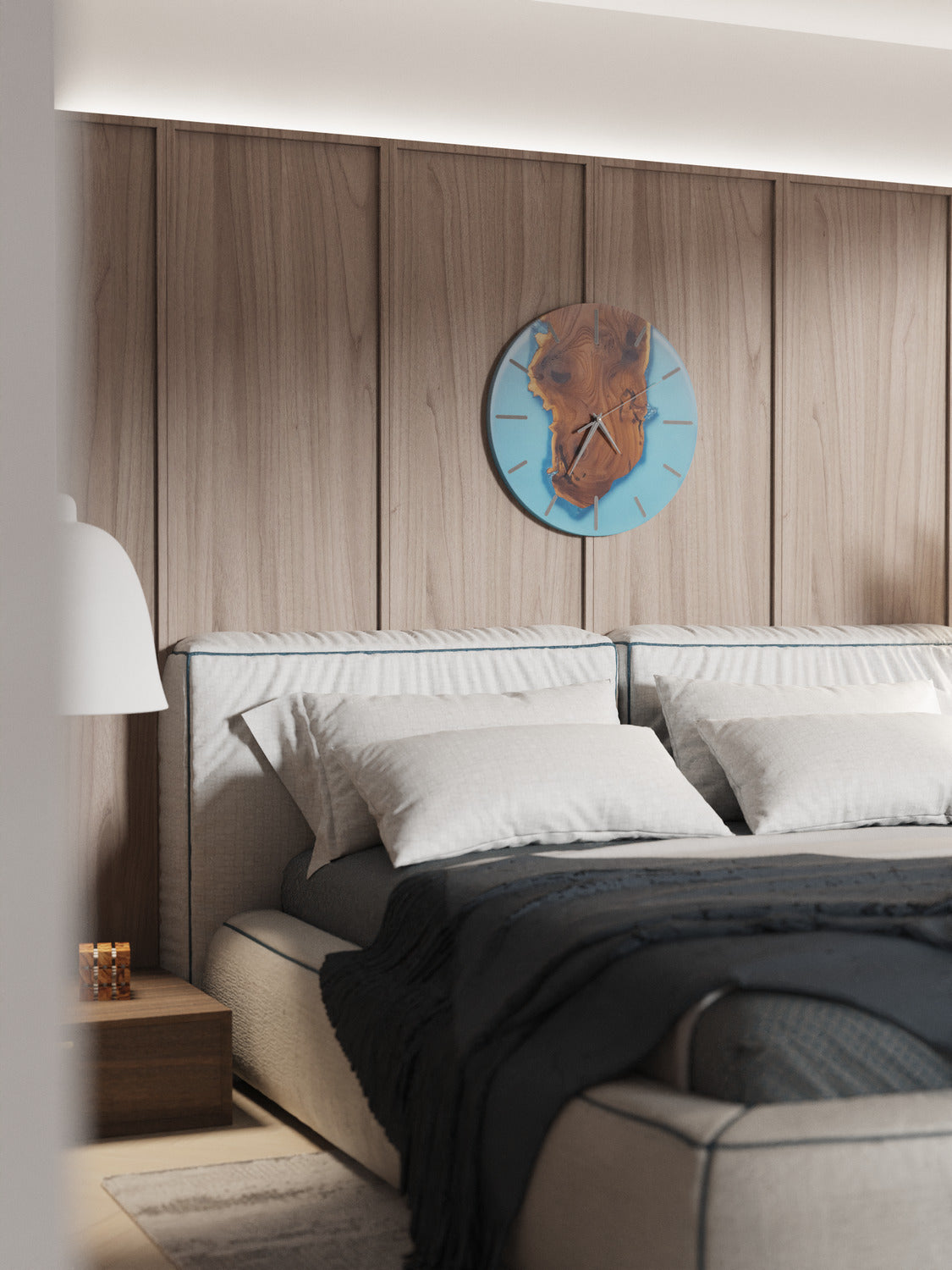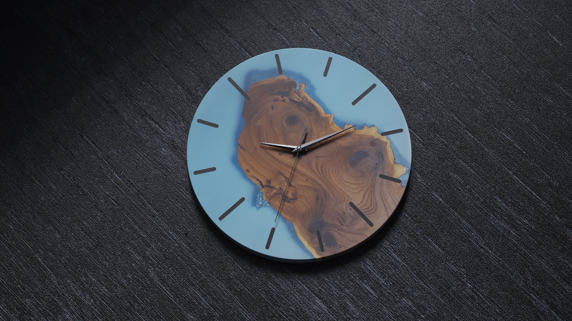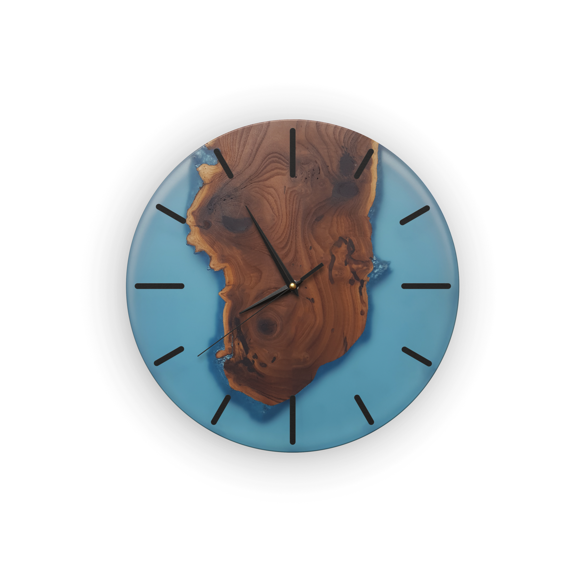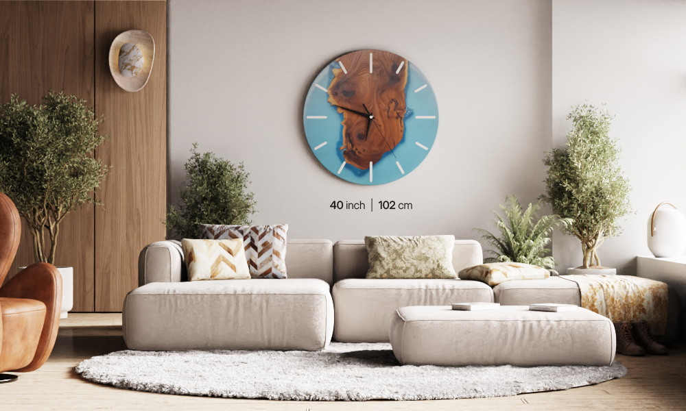 Introducing our captivating Azure Radiance Resin Wall Clock, an exquisite fusion of Silverberry wood and stunning azure-colored resin. Embrace the beauty of nature's elegance with this handcrafted timepiece that exudes serenity and sophistication.