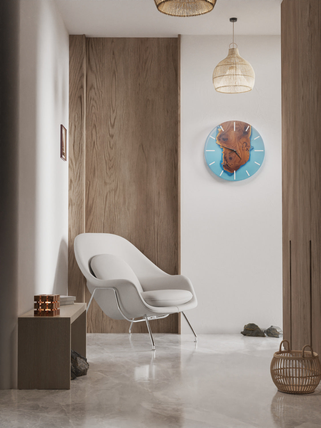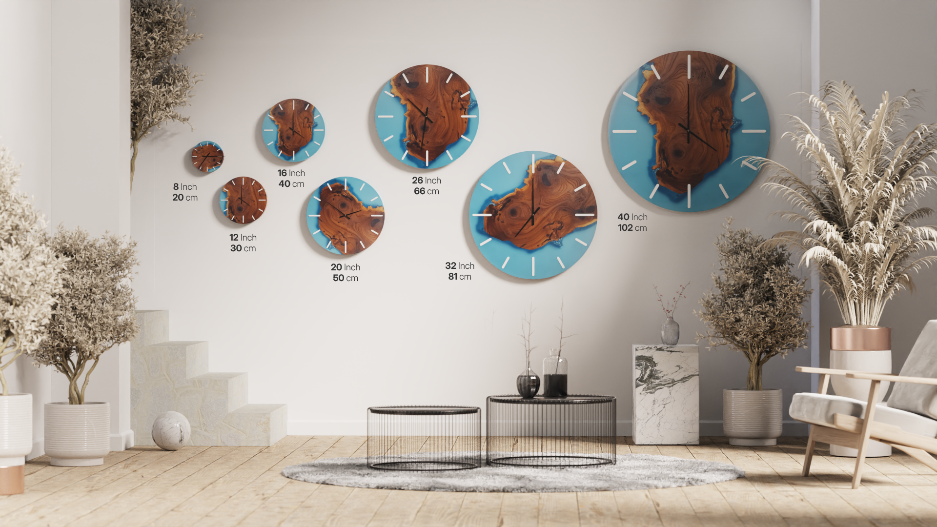 Each Azure Radiance Resin Wall Clock is meticulously crafted with precision and care, showcasing the harmonious blend of Silverberry wood's natural charm and the mesmerizing allure of azure resin. The result is a unique and eye-catching piece that will add a touch of elegance to any room.