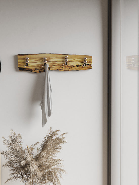 Embrace the rustic elegance of the Monteverde Coat Rack. The live edge wood preserves the natural curves and imperfections of the wood, adding a touch of organic charm to the overall design. Each coat rack is a testament to the beauty of live edge wood and the artistry of handmade craftsmanship.