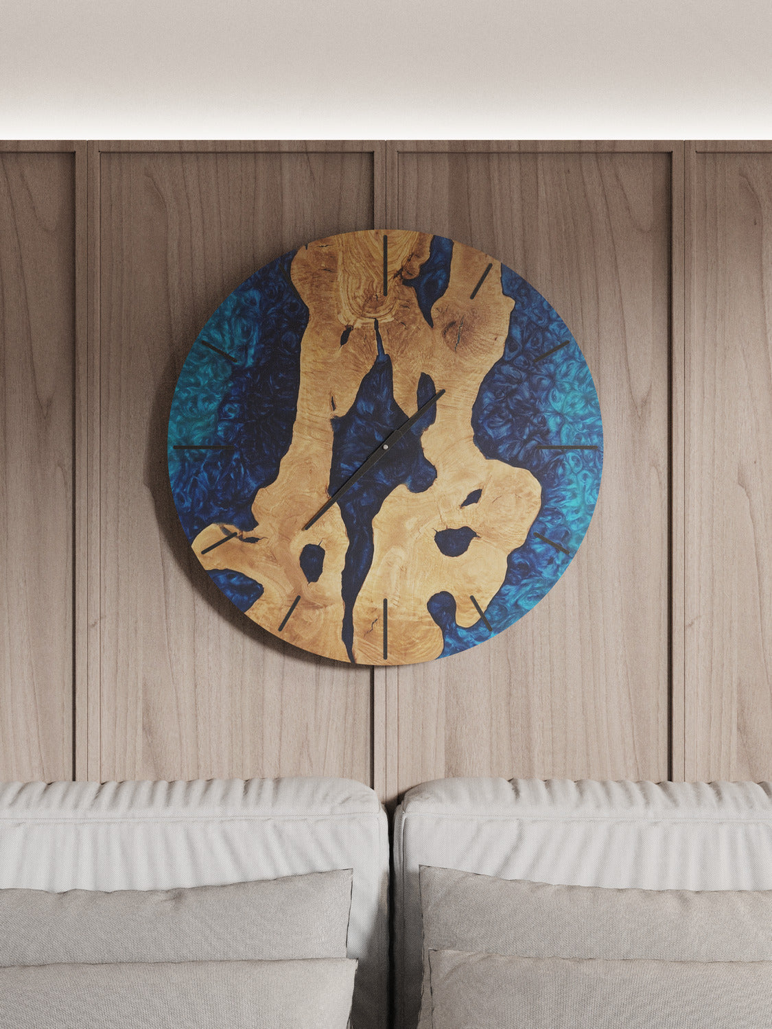 Introducing the Neptune Resin Wall Clock – a celestial fusion of artistry and timekeeping, meticulously crafted to bring the allure of the cosmos into your home. Handmade with precision and care, this exceptional clock seamlessly melds the beauty of premium olive wood with the mystique of resin. With the power to choose your preferred size and indicator, as well as the invitation for custom creations, the Neptune Resin Wall Clock becomes a unique expression of your style and imagination.