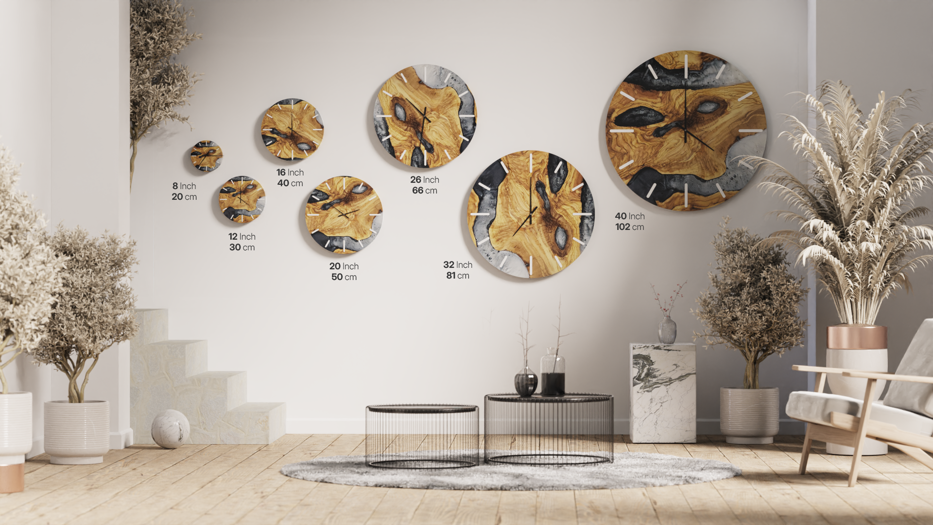 Please note that due to the inherent variations in wood, every product may slightly differ from the pictures, adding to its unique charm and character. Rest assured, the essence of the Onyx Resin Wall Clock's beauty will be preserved in every piece.