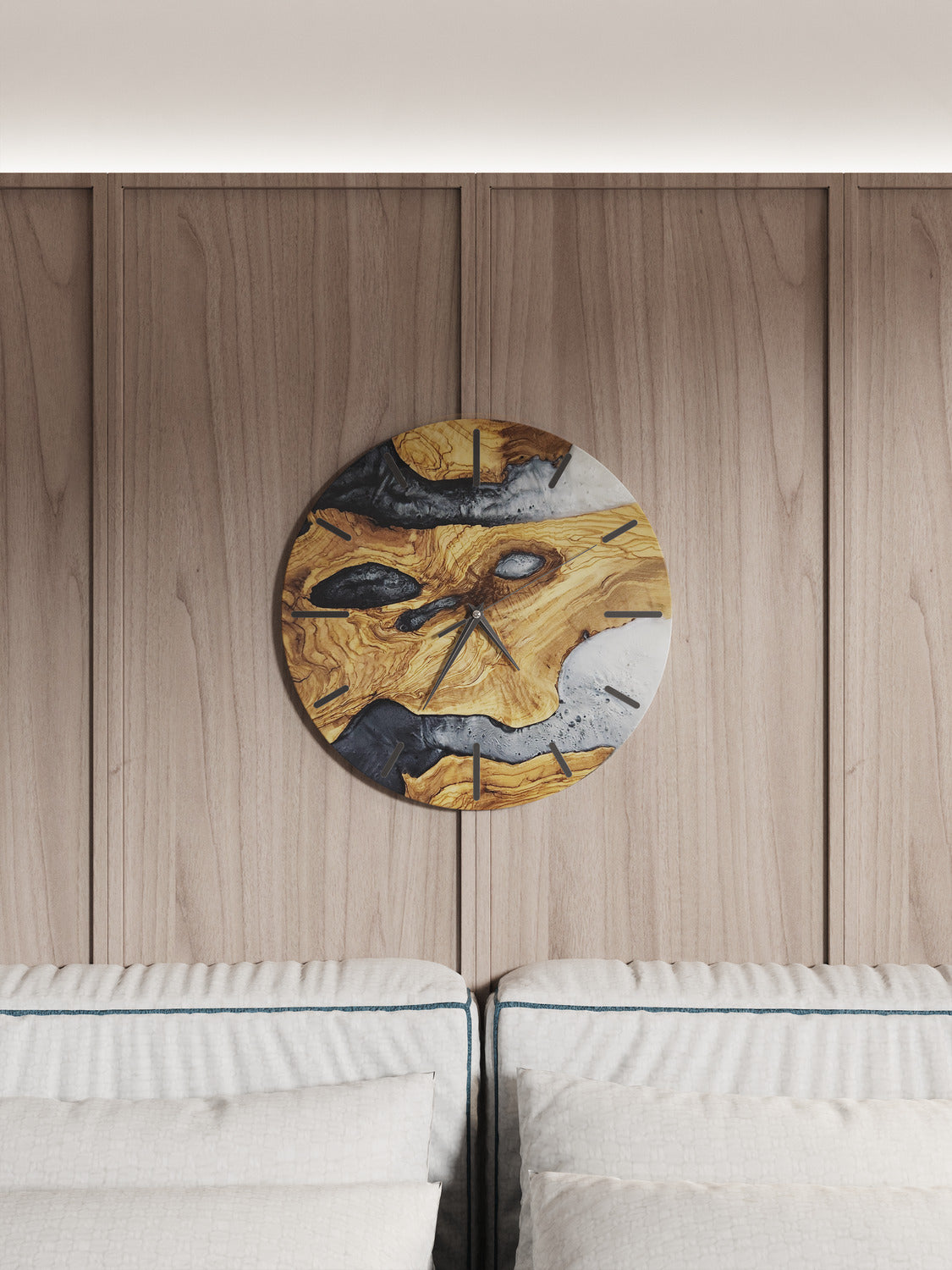 Each Onyx Resin Wall Clock is crafted with utmost care and precision, showcasing the seamless blend of Olive Wood's natural beauty and the mesmerizing Onyx resin. The result is a captivating and eye-catching piece that will elevate any space with its timeless appeal.