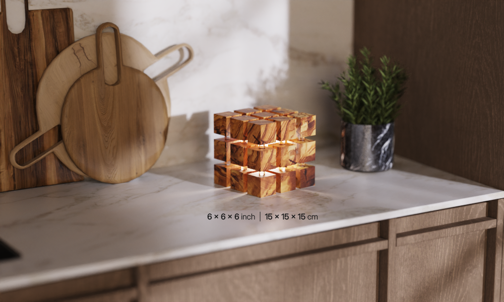Illuminate your life with the Tetra LEDcube and discover how the fusion of premium olive wood and captivating illumination can transform your surroundings. Experience the allure of custom-made artistry and embrace a lighting solution that is as individual as you are. Order now and infuse your space with the magic of light and wood.