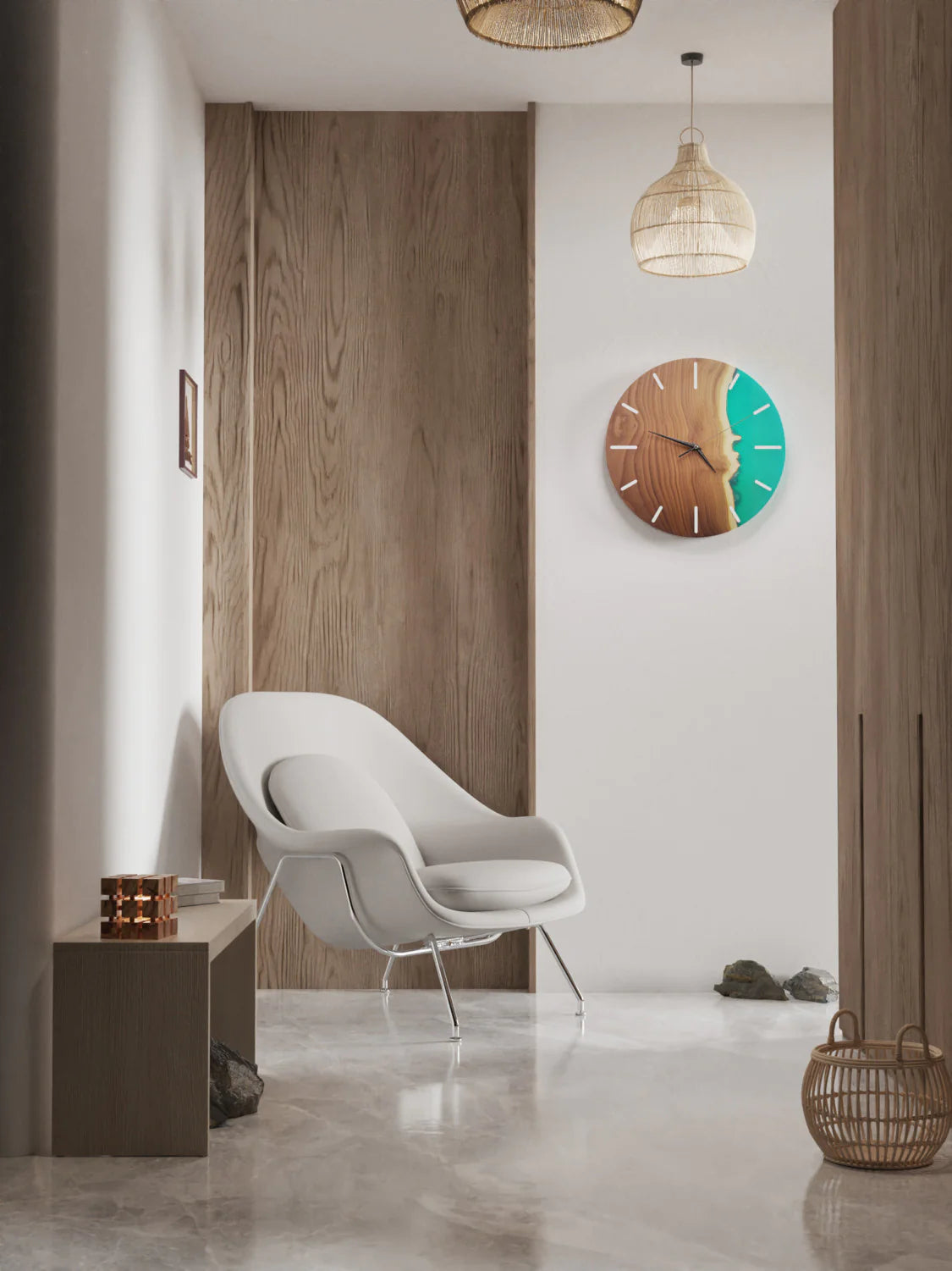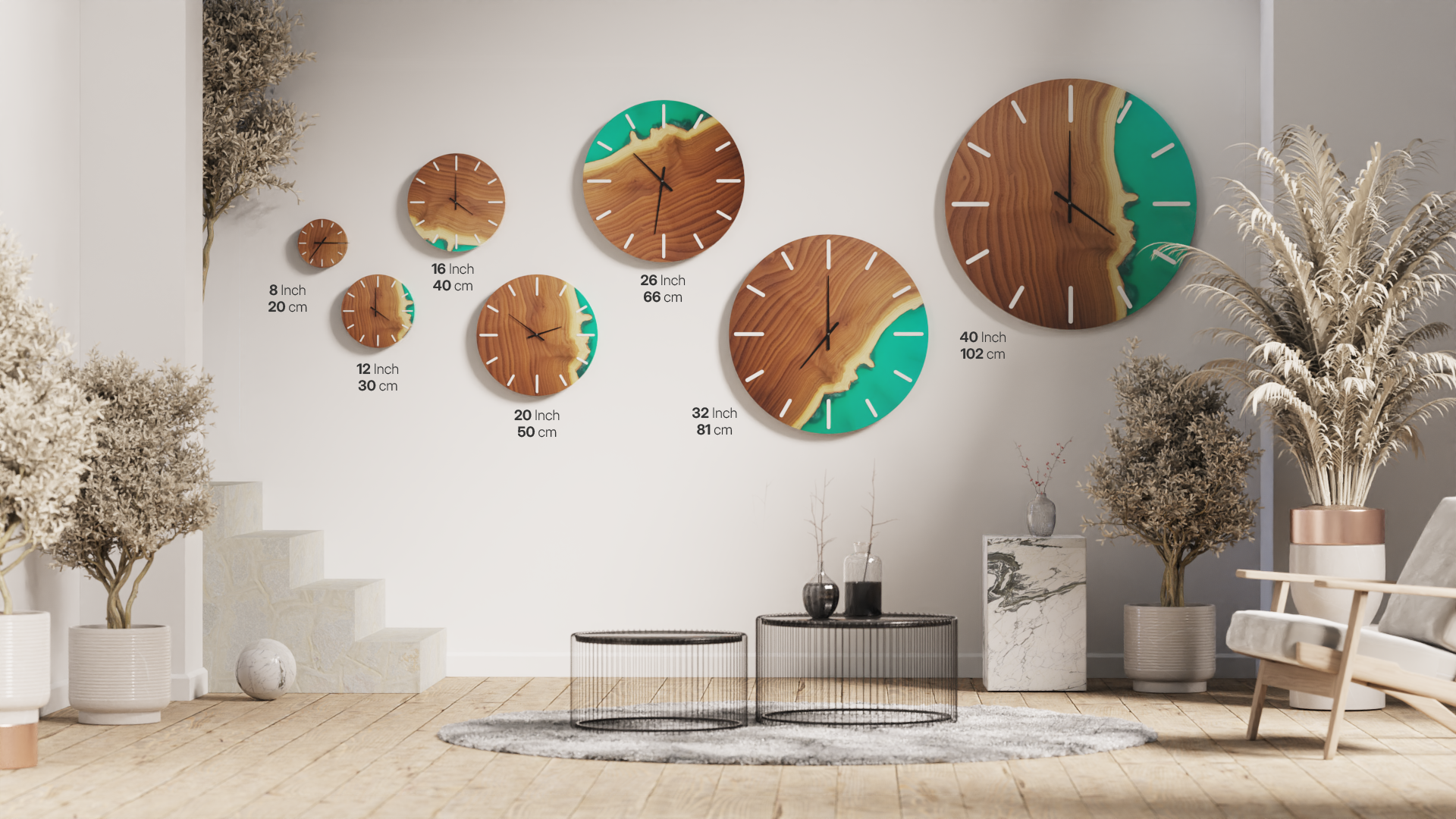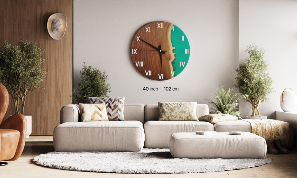 Please note that due to the inherent variations in wood, every product may slightly differ from the pictures, adding to its unique charm and character. Rest assured, the essence of the Verdant Serenity Resin Wall Clock's beauty will be preserved in every piece.